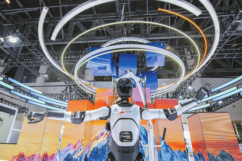 ↑阿加犀人形機器人正在展示運動能力。四川日報全媒體記者何海洋攝