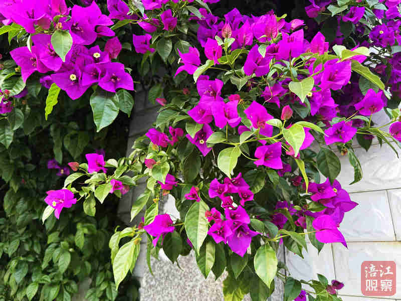 它總是不懼驕陽、不畏風雨,蓬勃熱烈地開放。微風吹過,三角梅沿著墻體傾瀉而下,形成“花瀑”,與時光碰撞出夏日詩意。