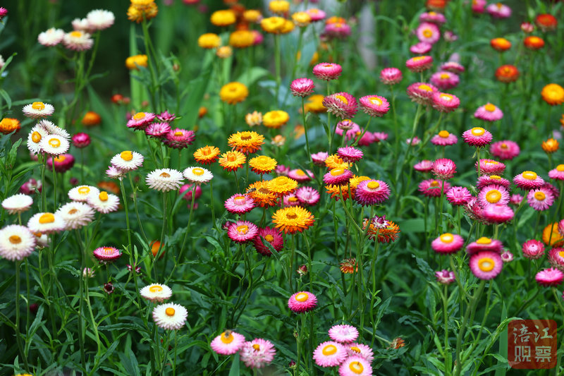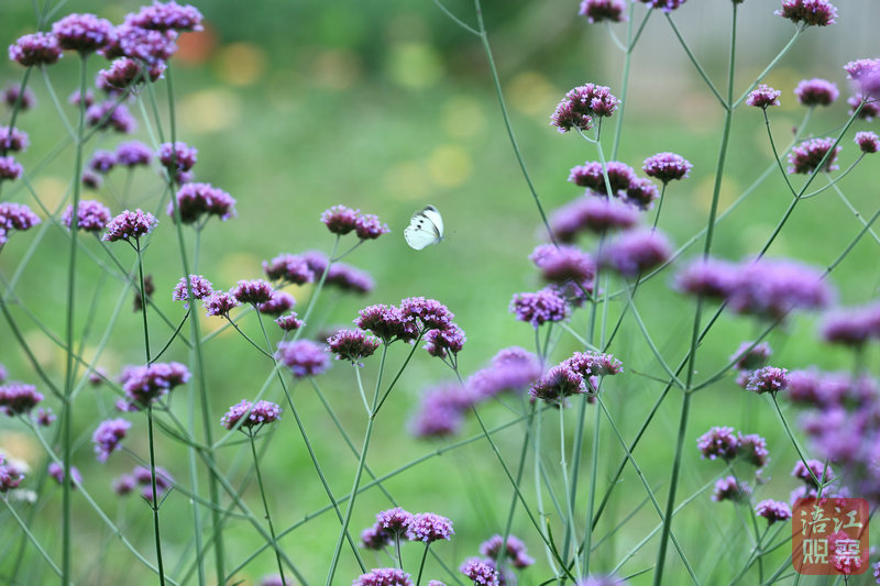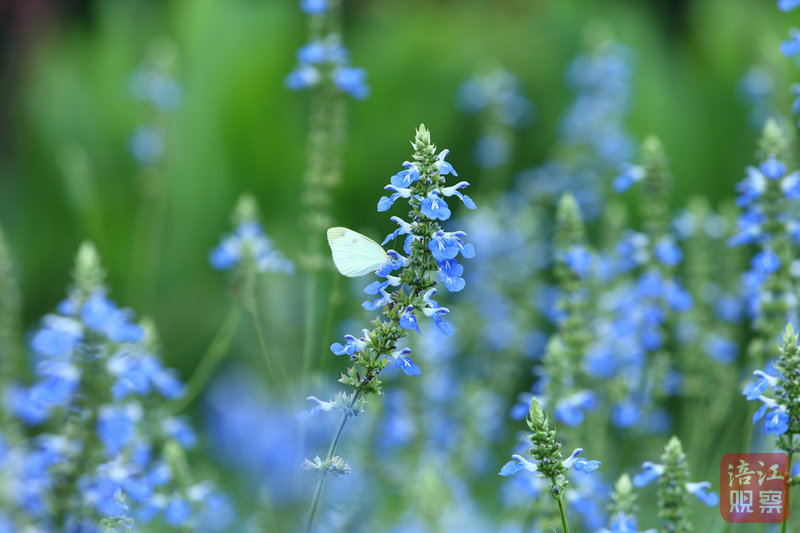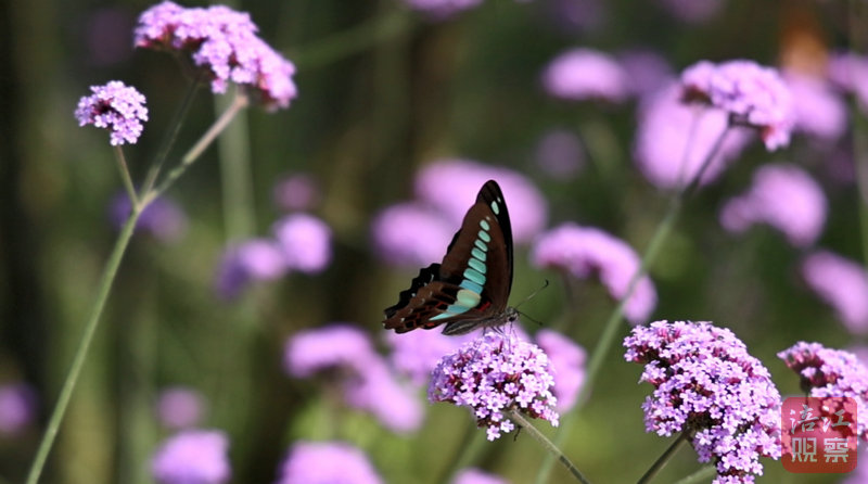 微風拂過,花枝搖曳,成群的蝴蝶穿梭花間,與爛漫花影相映成趣,勾勒出絢麗多彩的花海畫卷。