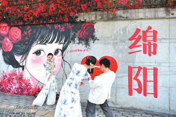 綿陽三里橋附近墻壁人物畫作栩栩如生,市民打卡留念。視覺綿陽資料圖片