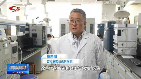 百裕制藥首席科學家 魏用剛:這款創新藥的核心原料銀杏內酯,是從銀杏葉中提取而得。有效抗炎、抑制血小板聚集、改善代謝、促進神經干細胞增殖分裂。
