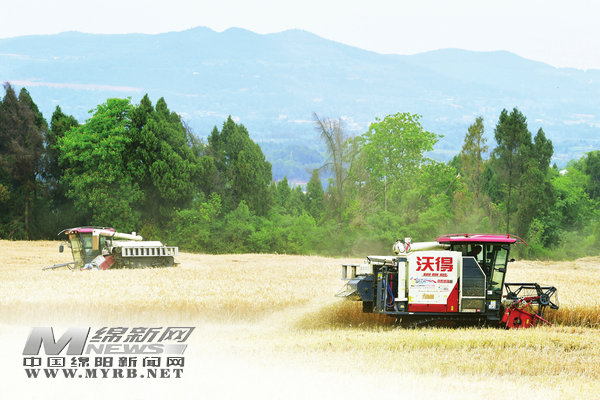 5月14日,游仙區(qū)仙鶴鎮(zhèn)帽兒山麥場機收現(xiàn)場。