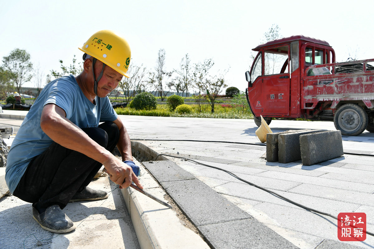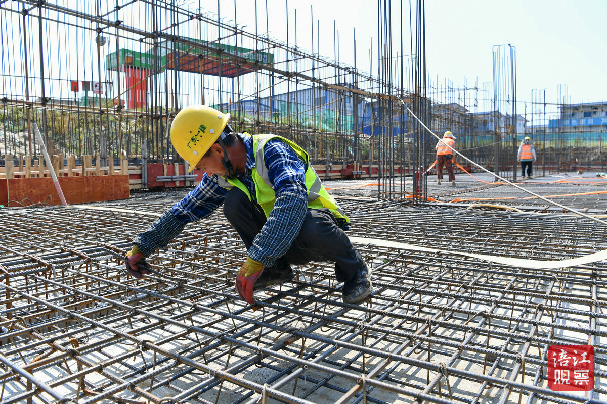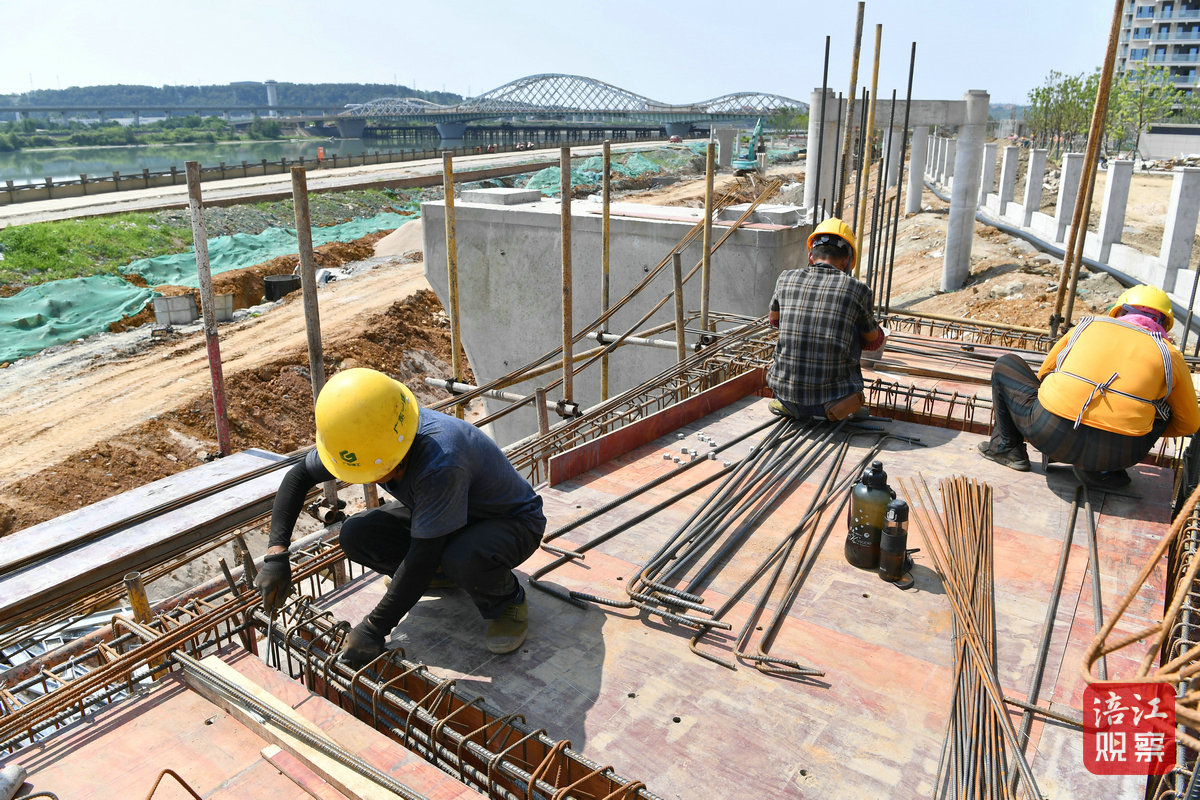 上午10點,記者來到位于涪城區(qū)青義鎮(zhèn)碧云路涪江沿岸一側的施工現(xiàn)場,只見現(xiàn)場負責人、技術人員以及建設工人都在忙碌奔波。工人們有的進行綠植養(yǎng)護,有的開展人行天橋、地下停車庫主體結構施工,工程建設有序推進。