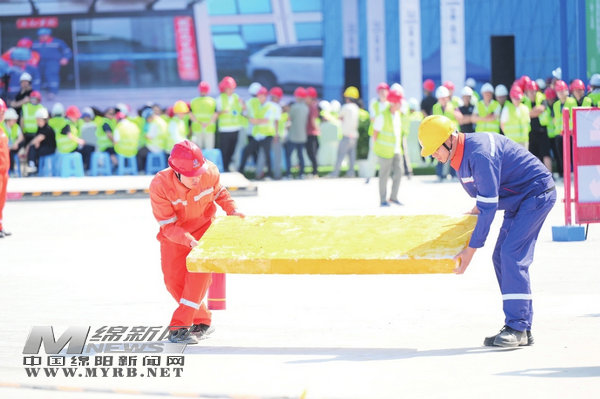 本次活動由綿陽市住建委主辦,游仙區人民政府、中國核工業二四建設有限公司聯合承辦,市質監站等協辦。活動剛啟動不久,一陣急促的呼喊聲便打破了現場的平靜:“出事了,鋼管掉下來砸到人了!”模擬場景中,工地6號樓的塔吊因“違規”吊裝,鋼管捆綁不牢導致砸落傷人,并意外撞擊焊槍引發火災,險情瞬間升級。