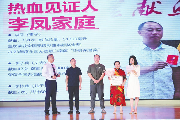“熱血見證人”李鳳一家、醫(yī)生許芳、四川中醫(yī)藥高等專科學(xué)校何溶分別以獻(xiàn)血者、臨床輸血醫(yī)生、志愿者的角度,分享他們的感人故事,講述奉獻(xiàn)熱血的意義;利爾化學(xué)股份有限公司李中升作為無償獻(xiàn)血成績突出單位代表,分享了企業(yè)在團(tuán)體獻(xiàn)血活動(dòng)中的實(shí)踐經(jīng)驗(yàn),呼吁更多人加入獻(xiàn)血隊(duì)伍。