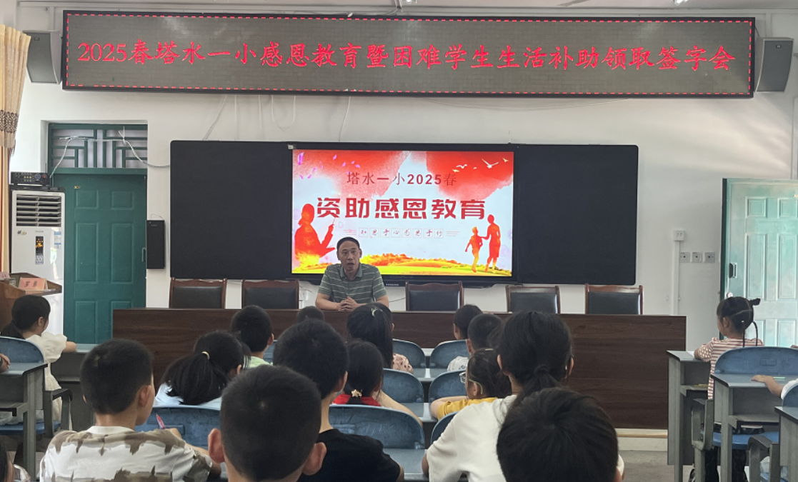 綿陽新聞網訊 近日,安州區塔水鎮第一小學開展了2025年春季學期家庭經濟困難學生生活補助確認簽字暨感恩教育會活動。