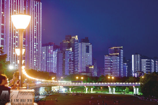 綿陽新聞網(wǎng)訊 當(dāng)落日沉下樹梢,城市便披上了一層橙色的外衣,霞光浸染的天空讓每一處風(fēng)景都愈發(fā)多彩。在綿陽城區(qū)涪江兩岸,傍晚時(shí)分,江風(fēng)輕拂,驅(qū)散了白日蒸騰的暑氣,市民們沿著江岸納涼消暑。隨著晚霞散去,兩岸燈火次第點(diǎn)亮,閃爍的霓虹披掛在樓宇橋梁之上,璀璨奪目,描繪出城市夜晚的炫彩輪廓。