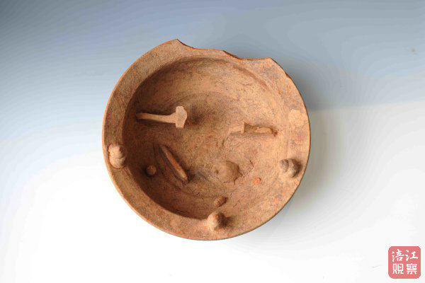 ↑綿陽涪城區豐谷鎮出土的陶水塘(張登軍 攝影)