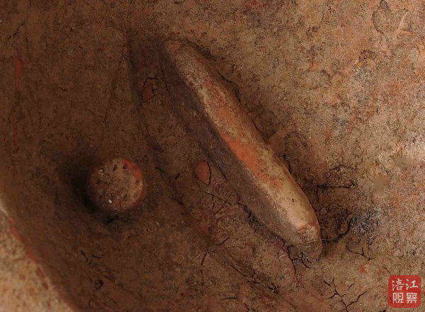 ↑綿陽涪城區豐谷鎮出土的陶水塘里面的藕(張登軍 攝影)