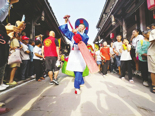 6月23日(農歷五月廿八),三臺縣郪江古鎮熱鬧非凡,青石板古街上人頭攢動,鑼鼓聲、歡笑聲交織成一片。一年一度的郪江城隍廟會盛大舉行,這場傳承千年的民俗盛事,以民俗巡游、祈雨儀式為亮點,吸引了周邊萬余名游客紛至沓來,共赴一場傳統與現代交融的文化盛宴。