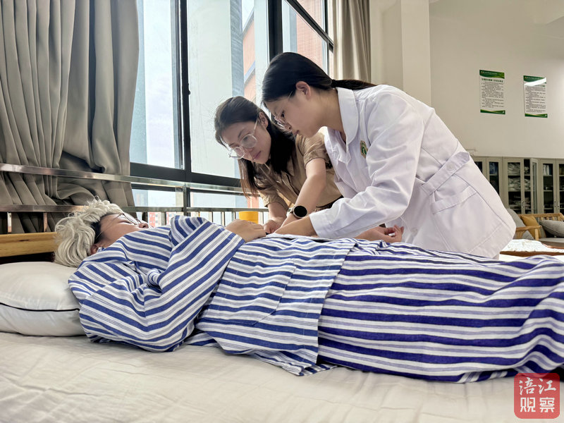 “奶奶,測量血壓的時(shí)候,會(huì)有一點(diǎn)緊,不要擔(dān)心,這是正常的,要注意保持不動(dòng)哦,這樣測量數(shù)據(jù)才準(zhǔn)確。”在四川幼兒師范高等專科學(xué)校老年服務(wù)實(shí)訓(xùn)中心,智慧健康養(yǎng)老服務(wù)與管理專業(yè)學(xué)生正在專業(yè)老師的指導(dǎo)下練習(xí)護(hù)理技能。