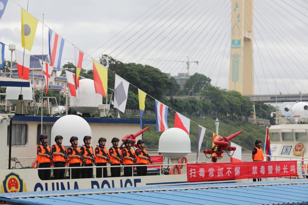 此次行動(dòng)正值“6·26”國(guó)際禁毒日。行動(dòng)開(kāi)始前,四國(guó)有關(guān)執(zhí)法部門齊聚中老緬泰湄公河聯(lián)合巡邏執(zhí)法四國(guó)指揮部召開(kāi)指揮官聯(lián)席會(huì),共同研定行動(dòng)計(jì)劃及啟動(dòng)系列禁毒主題宣傳活動(dòng),并在中方53107艇設(shè)立編隊(duì)指揮所指揮行動(dòng)。行動(dòng)中,參與行動(dòng)的各方執(zhí)法艇懸掛多語(yǔ)種禁毒宣傳標(biāo)語(yǔ),廣泛發(fā)動(dòng)流域百姓共同參與到打擊流域涉毒涉詐違法犯罪行動(dòng)中來(lái)。四方還共同派員組成了聯(lián)合禁毒宣傳小分隊(duì),深入瀾湄流域沿岸村寨、學(xué)校、企業(yè)開(kāi)展形式多樣、內(nèi)容豐富的系列禁毒宣傳活動(dòng)。