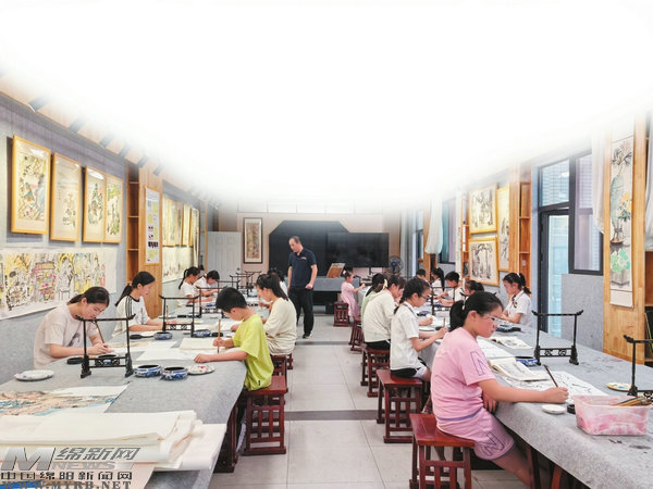 走進藝術樓,各個社團教室熱鬧非凡。國畫、剪紙、巖彩畫、泥塑、黏土等社團里,孩子們化身小藝術家,盡情釋放創作熱情。巖彩畫社團的墻壁上,一幅幅敦煌主題畫作輝煌大氣;剪紙社團內,以安州環山環湖自行車賽為主題的作品童趣盎然,展示了本土特色;在黏土社團,24節氣系列作品創意十足,兼具文化底蘊與藝術美感。