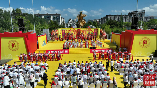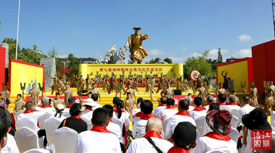 上午9時45分,大禹誕辰民俗文化展示活動拉開序幕。莊嚴的九響禮銃,象征著大禹平定九州的豐功偉績;深沉有力的三十四通鼓聲,寄托著全國各地對中華先祖的深切懷念;悠揚的九聲鐘鳴,承載著十四億炎黃子孫對治水英雄的崇高敬意。兩岸嘉賓代表敬獻花籃,表達對華夏治水始祖的敬仰和尊崇。中國先秦史學會副會長彭邦本恭讀《頌大禹文》。兩岸嘉賓起立,手執羌紅,面向大禹像三鞠躬,活動在頌歌獻舞中圓滿禮成。