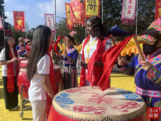 當日下午,海峽兩岸禹羌特色村寨交流會在石椅羌寨舉行。兩岸嘉賓一同體驗羌族特色民俗文化,多元感受少數民族特色村寨的鄉村振興成果。