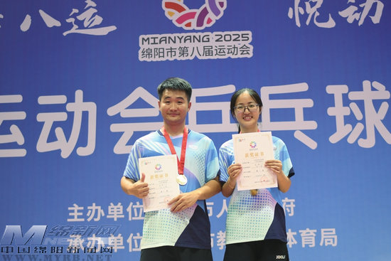 綿陽新聞網訊 7月3日,綿陽市第八屆運動會成年組乒乓球團體賽在四川文化藝術學院梓潼校區收官。頒獎臺上,來自宣教文衛系統的應文科、羅人萍夫婦佩戴金牌并肩而立,成為賽場一道亮眼的風景。