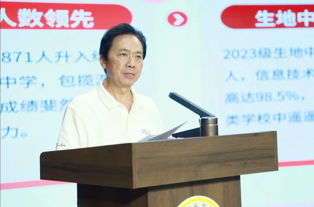 為了深入學習貫徹習近平總書記關于教育的重要論述,強化師德師風建設,筑牢教育發展根基,進一步提升全體教職工的政治素養和師德師風水平。7月7日下午,綿陽市富樂中學召開 了2025 年春季學期期末政治學習暨師德師風專題培訓大會。游仙區紀委副書記、區監委副主任廖中建蒞臨指導并作專題講座,該校黨委書記廖聰壽開展師德師風專項培訓,黨委副書記、校長胥艷主持會議,全體教職工參會。