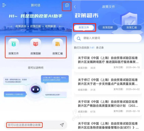 臨港新片區匯聚了海量創新型企業,政策紅利是其發展的關鍵助推器。然而,面對各級各類惠企政策,傳統查詢方式往往效率低下、信息滯后。“政策AI”助手的誕生,滿足了企業用戶高效查詢政策、及時掌握政策動態的迫切需求。通過精準語義理解與多輪問答能力,用戶無需使用刻板的關鍵詞,而是可以用自然語言(如“我是一家集成電路企業,在臨港可以享受哪些優惠政策?”)進行提問;同時,憑借政策關聯與智能匹配能力,通過智能識別并推薦關聯政策,可幫助用戶發現忽略的潛在支持點,實現政策的“精準滴灌”。