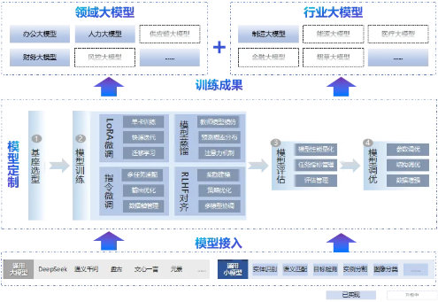 “同舟”平臺自主研發三級模型適配體系,創新實現從通用大模型向行業專屬模型的精準躍遷,支持企業基于私有數據進行專業化、適配業務需求的專屬模型構建,有效提升模型在特定業務場景下的推理準確性與響應效率。在多輪實測中,行業模型在知識命中率、上下文理解能力、任務執行精度等關鍵指標上,相較通用模型平均提升30%以上。