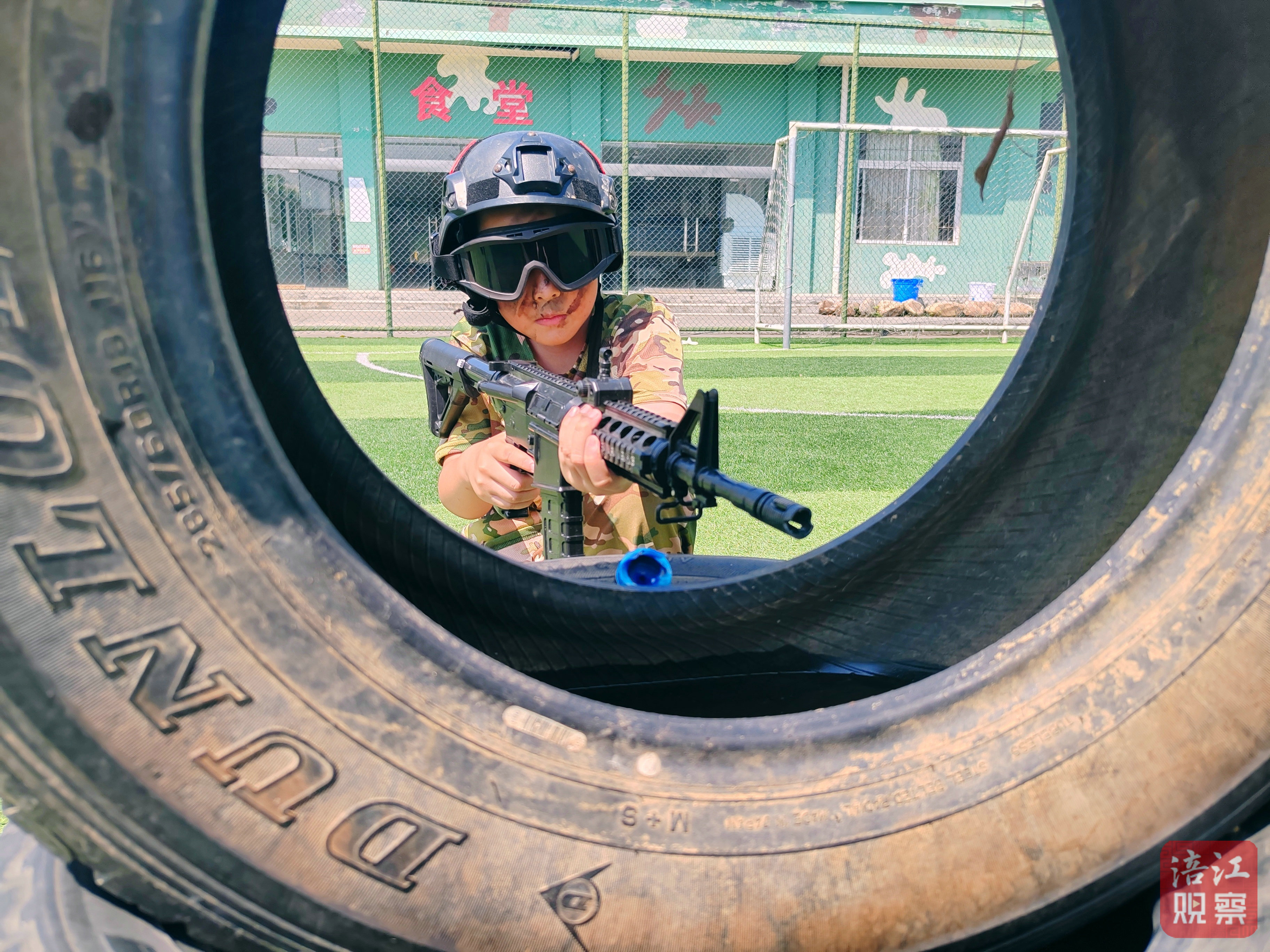 在迷彩涂裝的訓練樓頂端,孩子們體驗了繩降;在一幕幕煙塵滾滾的“戰場”中,孩子們又饒有興趣地玩起了CS模擬對抗戰。