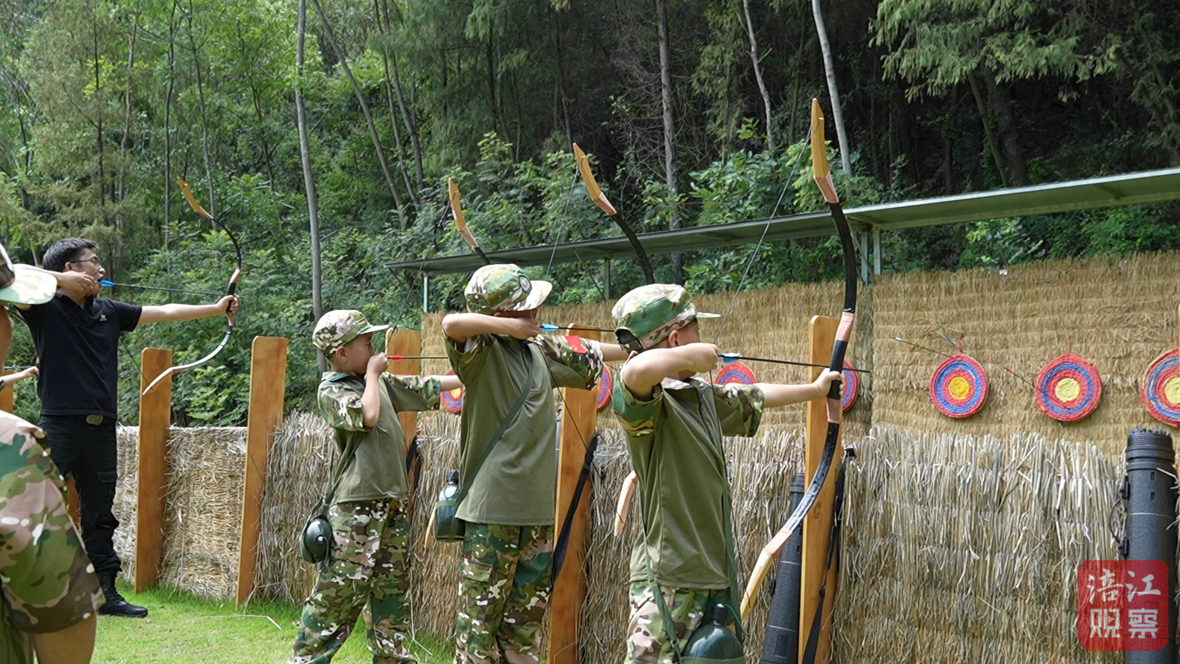 在營地里,孩子們熱情高漲地參與射箭、打靶等項目,沉浸式體驗軍旅生活。剛訓練完射箭項目的夏令營營員秦澤龍激動地說:“穿上這身迷彩服,體驗了軍旅生活,更加明白美好生活的不易。未來,我要爭做熱血強國少年。”