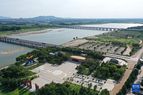 7月14日拍攝的大汶口遺址博物館和主題廣場(chǎng)(無(wú)人機(jī)照片)。