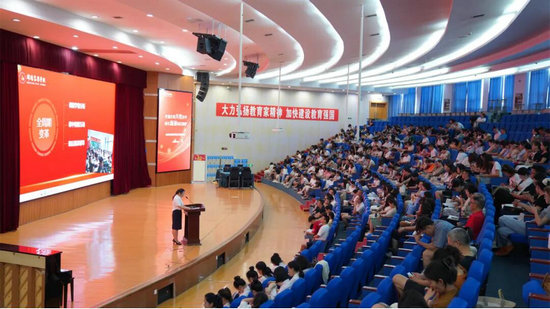隨后,梁春艷立足當前教育發展大勢,客觀剖析了學校面臨的機遇與挑戰,直指發展中的短板弱項并提出系統性解決方案。她著重強調,這份亮眼答卷的每一頁都浸透著全體教師的心血與汗水,她寄語全體教職工,要以教育家精神為引領,深耕課堂主陣地、厚植愛生情懷,在新學年錨定目標、勇毅篤行,續寫追光逐夢的嶄新篇章。