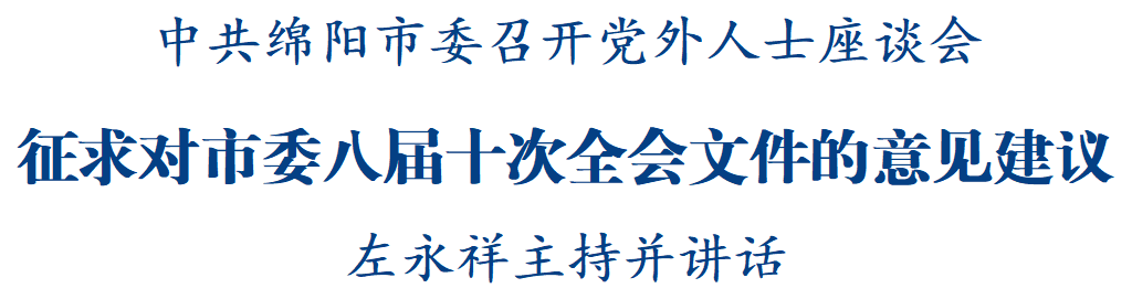 綿陽新聞網訊 中共綿陽市委八屆十次全會舉行前夕,市委召開黨外人士座談會,就全會文件聽取各民主黨派市(工)委會、市工商聯負責人和無黨派人士代表的意見建議。省委常委、副省長、市委書記左永祥主持座談會并講話。