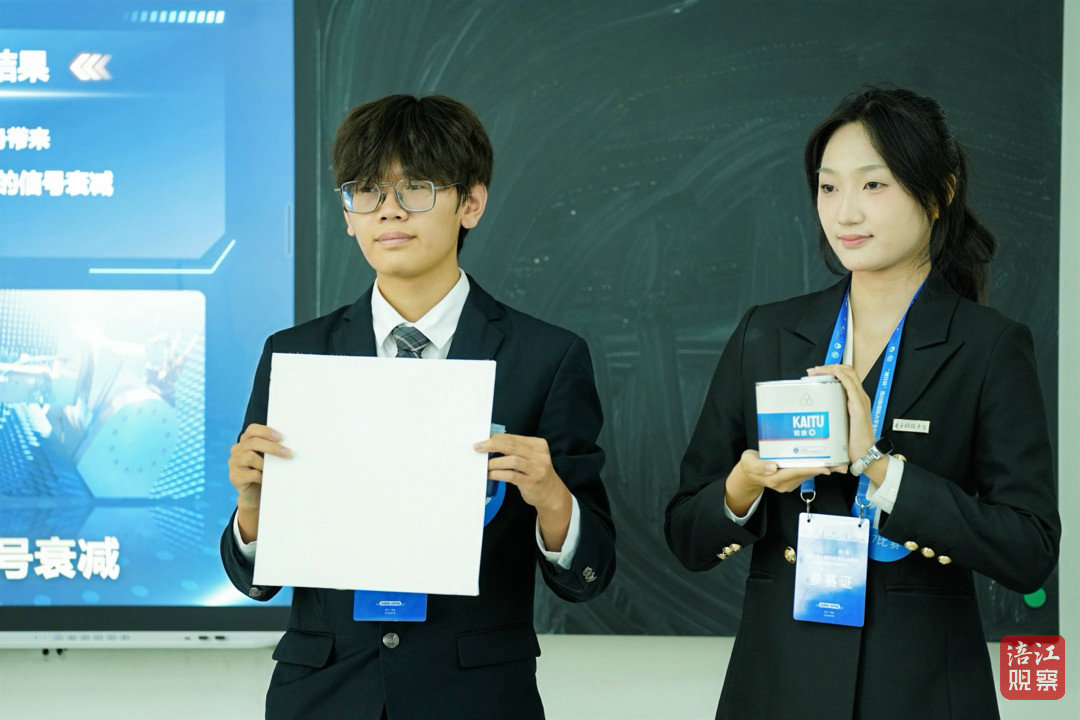 上午9時,青春的活力與創新的激情在校園里涌動。一間間答辯室內,參賽選手們狀態各異:有的腳步輕快、神采奕奕地步入賽場;有的在場外合影留念,以緩解緊張情緒;還有的正抓緊最后時間演練答辯演講稿。