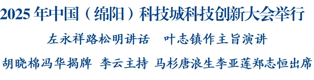 左永祥指出,科技賦能發展,創新決勝未來。我們愿同大家一道,聯合打造科技創新策源地、成果轉化優選地、科產融合示范地,共同探索科技創新之路、攜手逐夢未來發展之巔。衷心希望大家以此為契機,碰撞創新火花、共謀創新發展;誠摯邀請廣大科學家、企業家來綿開展科研活動和項目合作,與我們共譜科技創新的精彩華章、共創互利共贏的美好未來。