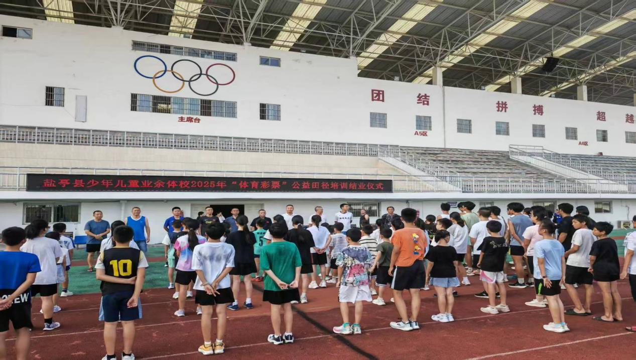 7月20日上午,鹽亭縣少年兒童業余體校2025年暑假“體育彩票”公益田徑培訓結業儀式在鹽亭縣體育中心舉行,這標志著為期20天的培訓活動圓滿結束。鹽亭縣教體局體衛藝股副股長范啟東、鹽亭縣少年兒童業余體校校長湯梓順出席儀式并講話。