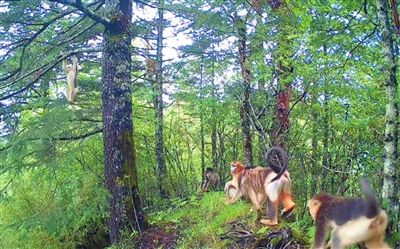 至于金絲猴,它們則偏愛待在樹冠層,因為樹冠層空氣流通好、散熱快,且樹冠遮擋了大部分直射陽光,溫度比地表低好幾度。“樹冠也是它們最熟悉、移動最靈活的環境,能遠離地面的潛在威脅。”
