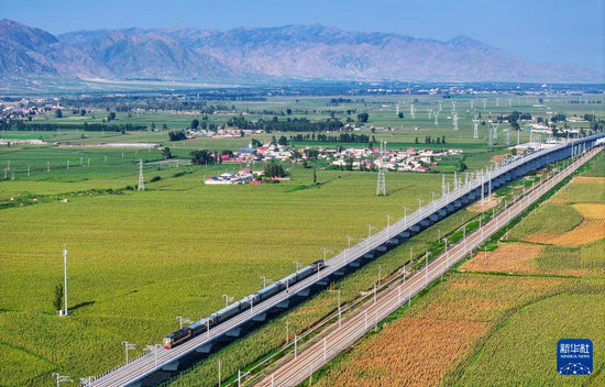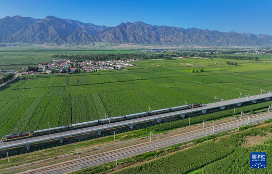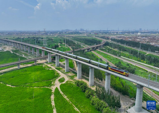 8月2日,檢測列車駛出包頭站(無人機照片)。新華社發