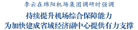 綿陽新聞網(wǎng)訊 8月6日,市委副書記、市長李云前往綿陽機場集團,調(diào)研服務(wù)文化強市旅游強市建設(shè)、服務(wù)保障旅客出行和機場運行、安全生產(chǎn)工作,強調(diào)要深入學習貫徹習近平總書記關(guān)于交通運輸工作的重要論述,認真落實省委十二屆七次全會和市委八屆十次全會精神,持續(xù)提升機場綜合保障能力,為加快建成省域經(jīng)濟副中心提供有力支撐。