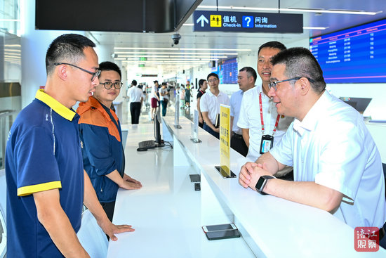 暑期迎來出行高峰,機場如何保障旅客平安順利出行,李云對此十分關(guān)心。走進航站樓安檢站,李云察看特檢室、安檢服務(wù)臺,了解旅客出行服務(wù)和特殊人群安檢服務(wù)工作。他強調(diào),要大力提升服務(wù)能力,聚焦旅客出行需求,在值機流程、行李服務(wù)、特殊關(guān)懷等方面推出更多暖心舉措,努力創(chuàng)造安全便捷暢通出行環(huán)境。今年省人代會期間,部分省人大代表就殘疾人過安檢存在不便等問題提出意見建議。李云在調(diào)研期間檢查了機場改進殘疾人服務(wù)工作情況,強調(diào)要進一步優(yōu)化無障礙乘機流程,加強機場員工的手語、盲文、假肢穿脫等技能培訓,定向提供輪椅接送、導盲協(xié)助等特色服務(wù),切實為殘疾人旅客提供更加安全、更加舒適的出行體驗。