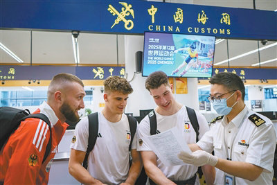 “世運會期間正值暑運高峰,成都天府國際機場出入境人數較平常增加了1.5倍,我們優化了智能檢查通道,保障旅客快捷通關;還開設了世運會專用窗口,為涉賽人員提供通關、咨詢等‘一站式’服務。”成都海關相關負責人薛珂說。據了解,8月3日至18日是成都世運會官方抵離服務期,預計將有超過5000名涉賽人員從成都天府國際機場等口岸通關。