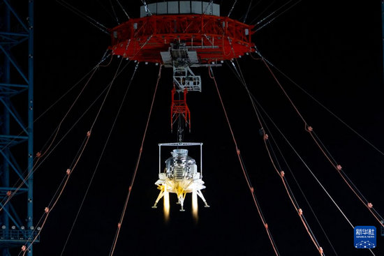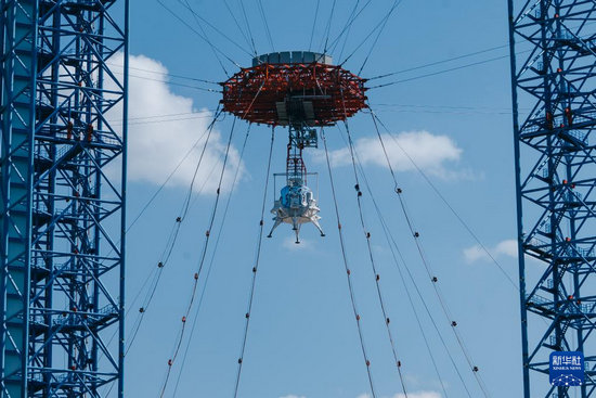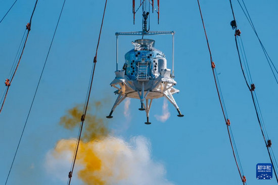 攬月月面著陸器在地外天體著陸試驗場進行測試(資料照片)。新華社發(韓慶策 攝)