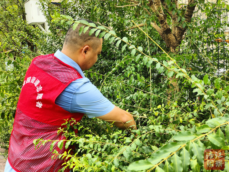 “修剪樹(shù)枝、清除雜草,可以防止蚊蟲、老鼠等孳生。”在科技城新區(qū)創(chuàng)業(yè)園街道元通社區(qū),廣播里循環(huán)播放著愛(ài)衛(wèi)知識(shí),志愿者和環(huán)衛(wèi)工人正合力整治環(huán)境衛(wèi)生。