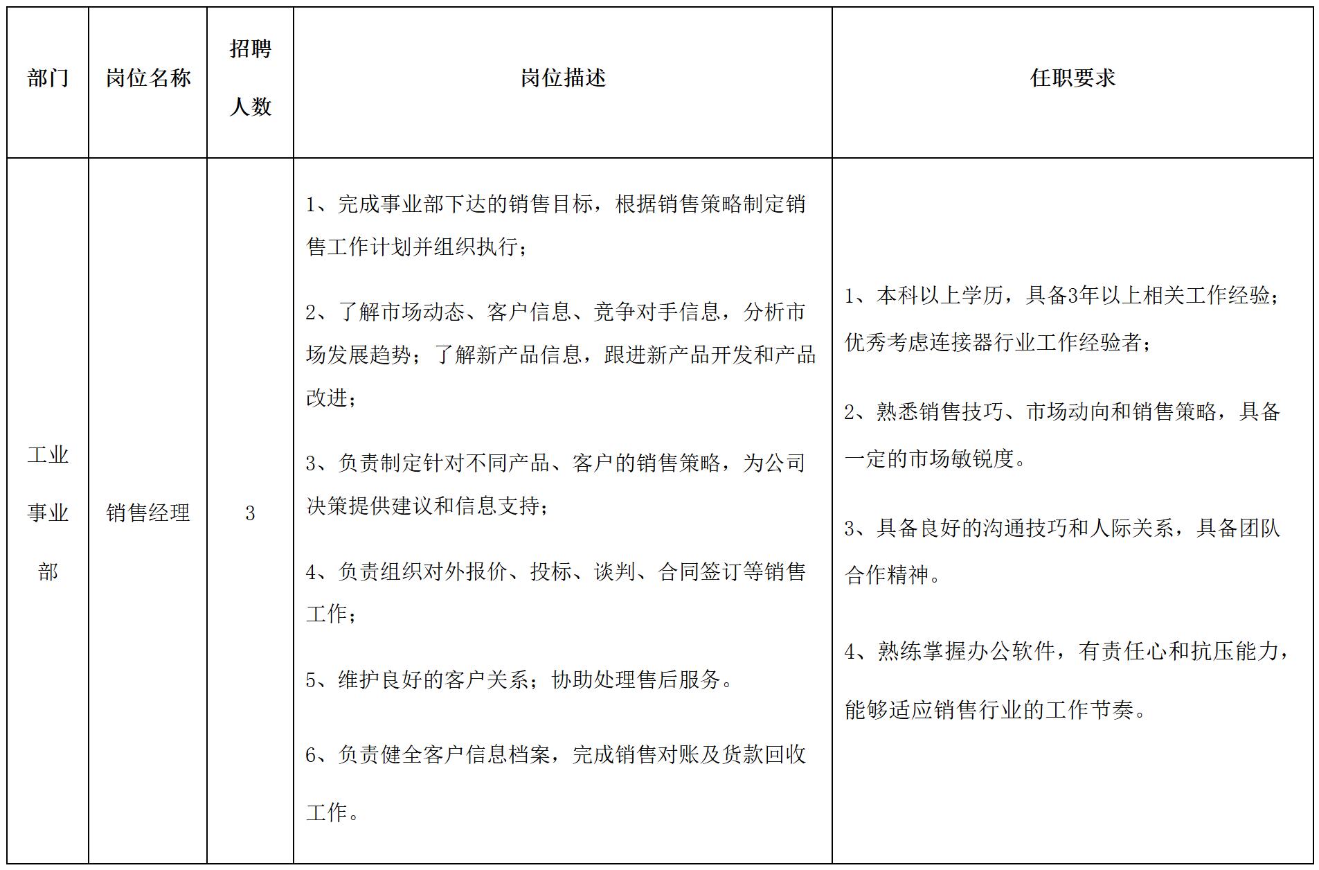 現因公司經營發展需要,現面向長虹控股集團內、外部誠聘銷售經理崗位人員,具體崗位招聘信息公告如下:
