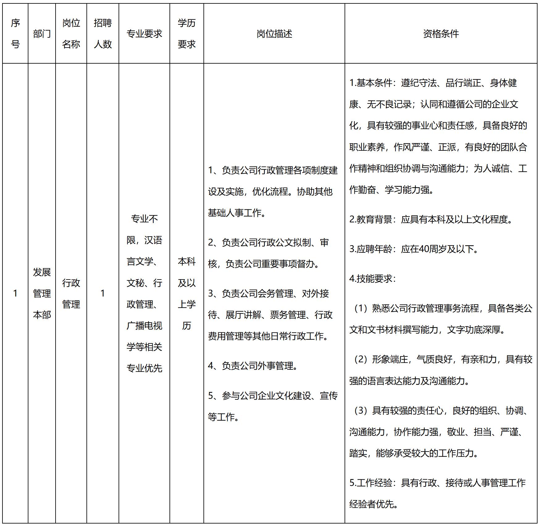 因經營業務需要,現公開招聘行政人事管理1名,具體職責及要求如下: