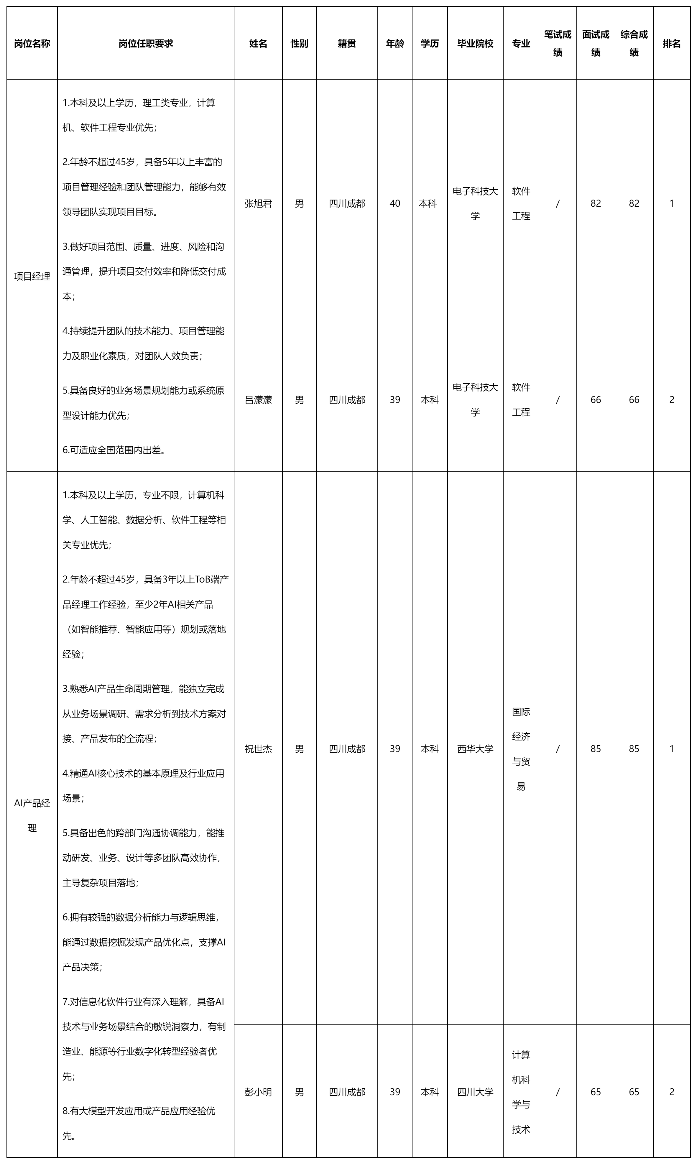 根據四川虹信軟件股份有限公司發布的招聘公告及招聘相關規定,經面試等程序,現將面試成績予以公示。