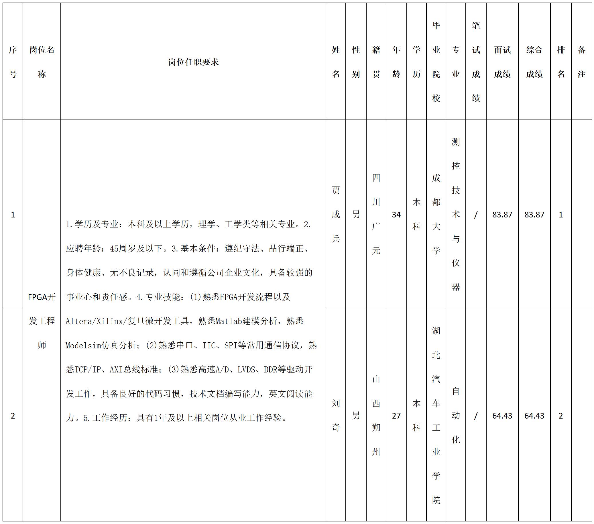 根據四川九強通信科技有限公司發布的招聘公告及招聘相關規定,經筆試、面試等程序,現將筆試(面試)成績予以公示。
