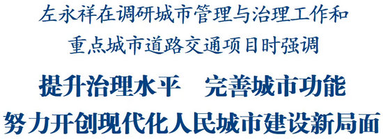 調研中,左永祥強調,要把實現人民群眾對美好生活的向往作為城市工作的出發點和落腳點,全面落實做好城市工作重點任務,努力在城市結構優化、動能轉換、品質提升、綠色轉型、文脈賡續、治理增效等方面實現新的突破,牢牢守住城市安全底線,推動城市高質量發展。要堅持城市內涵式發展,不斷創新優化城市治理方式,運用大數據、云計算、人工智能等技術手段,加強精細化管理,進一步提升城市治理效能。要全面梳理、挖掘、謀劃、實施一批發展需要、群眾期盼的民生項目,清單化、節點化、責任化加快推進建設,進一步提升人民群眾的獲得感、幸福感。要加強黨的全面領導,健全城市工作領導體制和工作機制,牢固樹立和踐行正確政績觀,堅持實事求是、求真務實,著力提高落實各項任務部署的能力,推動全市城市工作不斷取得新成效。