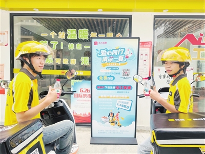 驛站負責人高藝玲忙著給進來休息的外賣小哥遞水。“我們驛站地處商圈,人流量大,每天來取水的戶外工作者絡繹不絕。早上剛補的兩箱水,這會兒就下去小半箱了。”高藝玲笑著說,高溫天,戶外工作者的礦泉水需求激增,公益贈水活動恰好解了他們的燃眉之急,“這項活動很不錯,真正滿足了大家的需求。”