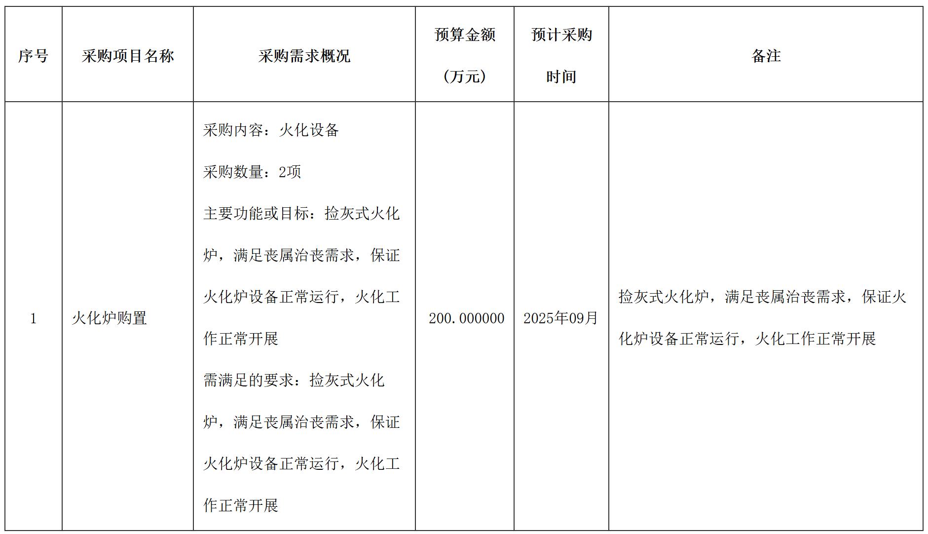為便于供應(yīng)商及時(shí)了解政府采購信息,根據(jù)《財(cái)政部關(guān)于開展政府采購意向公開工作的通知》(財(cái)庫〔2020〕10號(hào))等有關(guān)規(guī)定,現(xiàn)將綿陽市殯儀館2025年度(第批)采購意向公開如下: