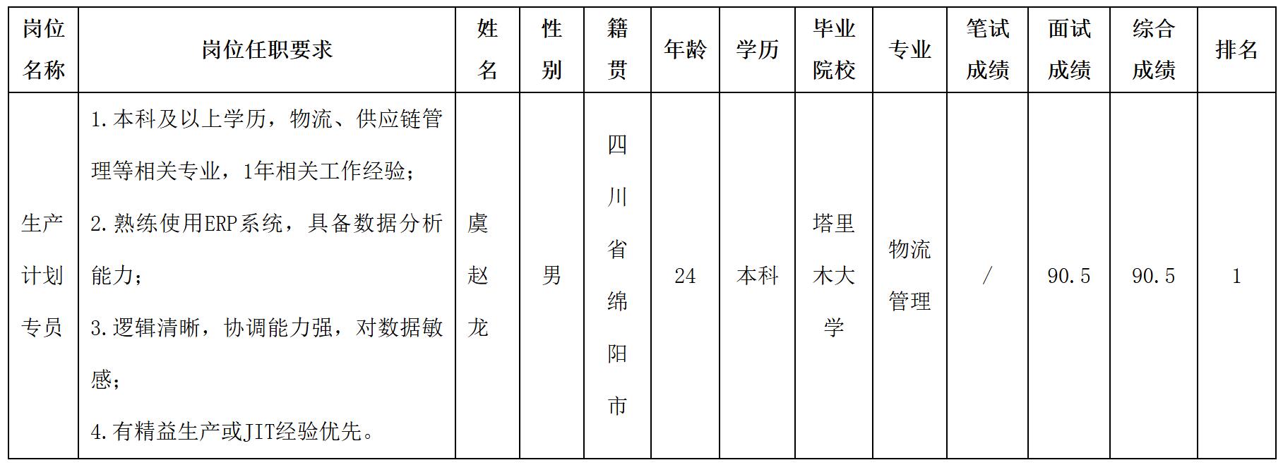 根據四川波鴻實業有限公司發布的招聘公告及招聘相關規定,經面試等程序,現將面試成績予以公示。