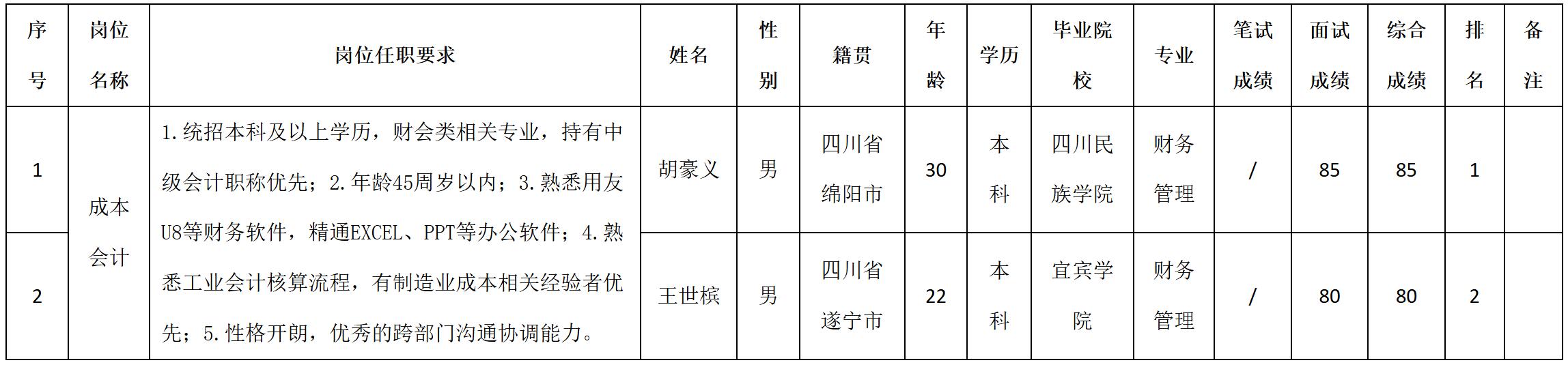 根據四川安和精密電子電器股份有限公司發布的招聘公告及招聘相關規定,經筆試、面試等程序,現將筆試(面試)成績予以公示。