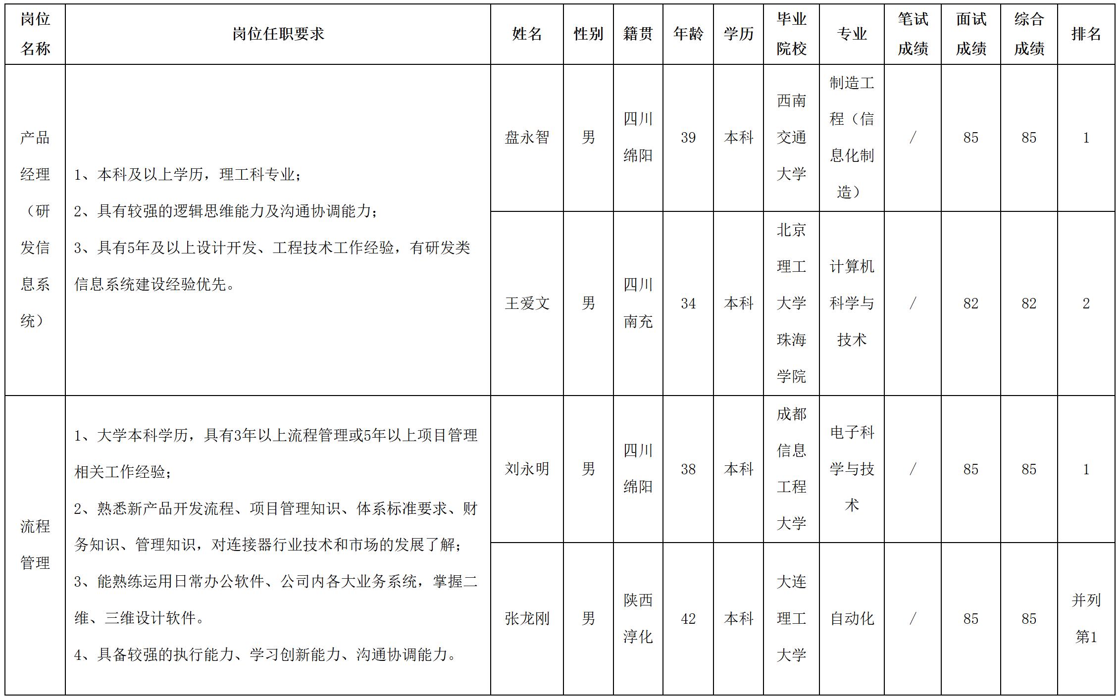 四川華豐科技股份有限公司關于招聘產品經理(研發信息系統)等崗位測試成績的公示