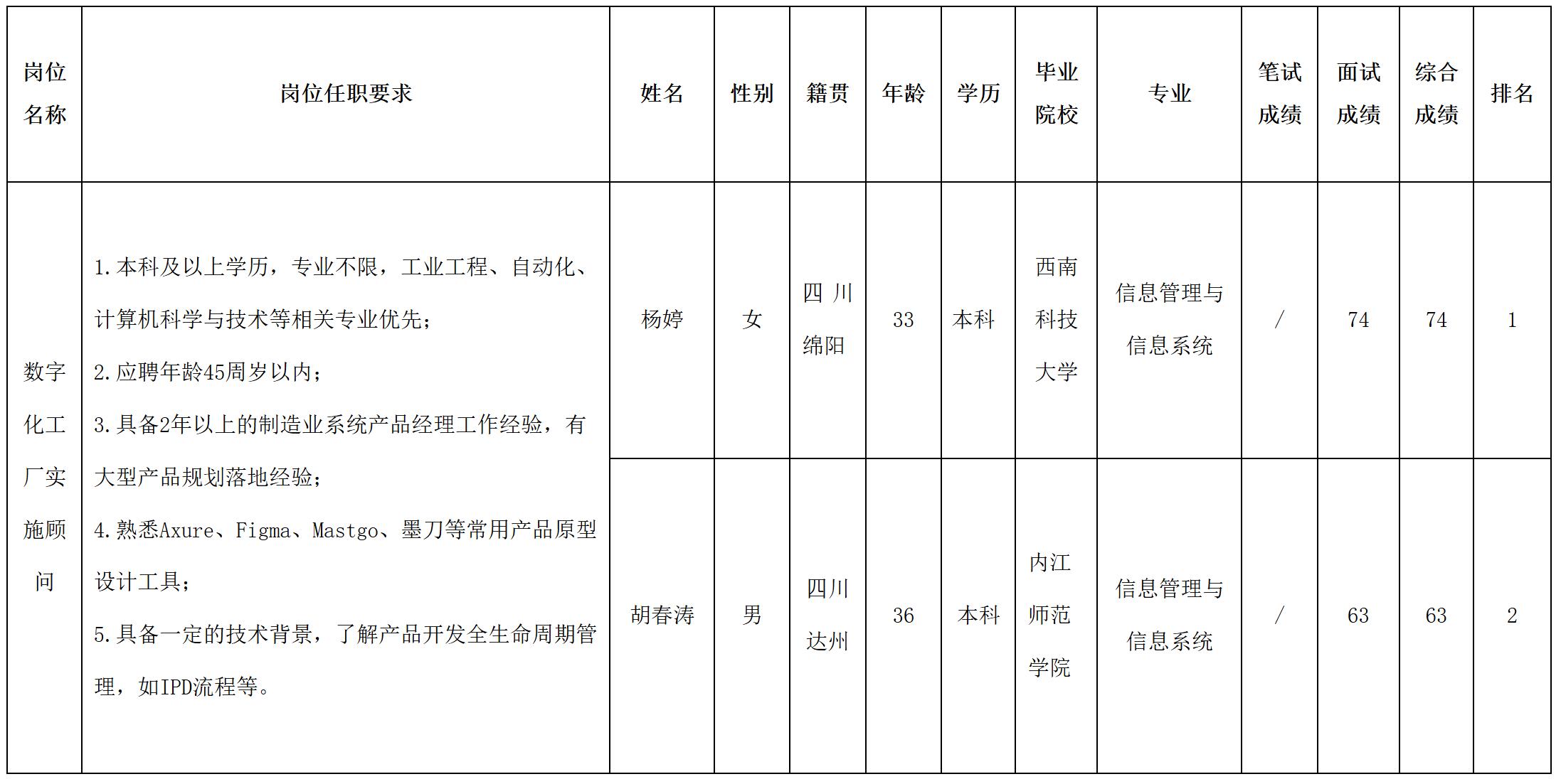 根據四川虹信軟件股份有限公司發布的招聘公告及招聘相關規定,經面試等程序,現將面試成績予以公示。