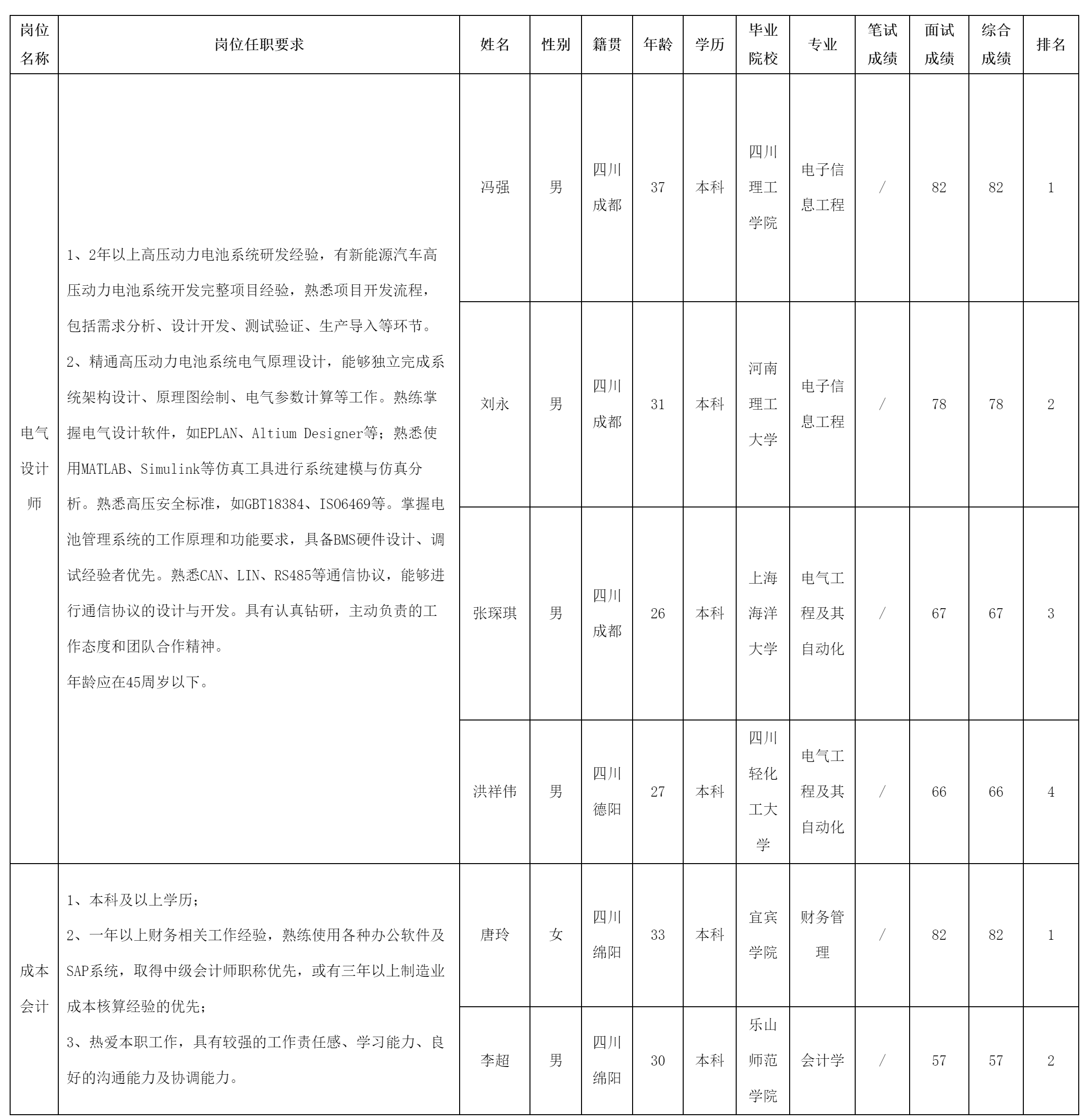 根據長虹電源公司發布的招聘公告及招聘相關規定,經面試等程序,現將面試成績予以公示。